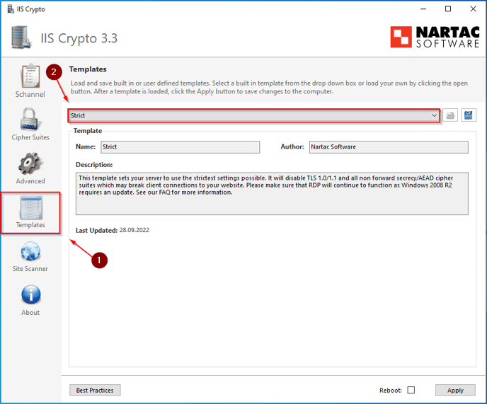Nun klicken Sie auf nun auf Templates und wählen dann Strict und abschließend Apply: