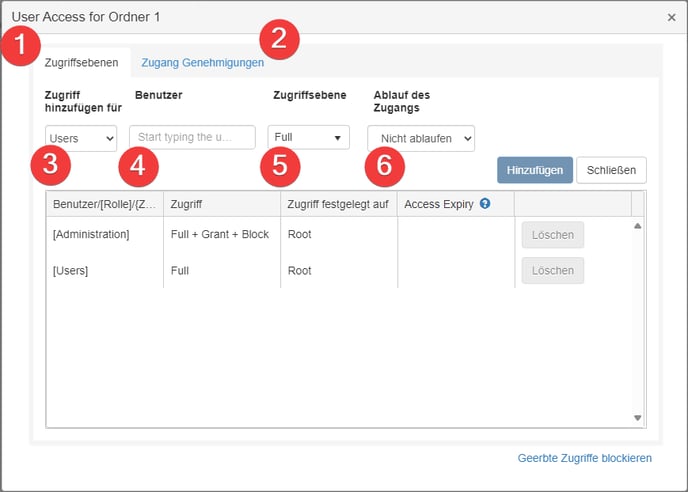 - Hier legen Sie fest, welche Zugriffsebene vergeben werden soll