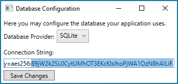 Nun sehen Sie den sogenannten Connection String. Ganz am Ende ist der Verschlüsselungsschlüssel zu sehen: